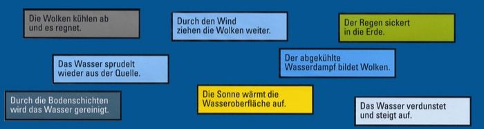Wasserdampf, der über den tropischen Meeren aufsteigt und in Wolken kondensiert, trägt wesentlich zur Erwärmung der Atmosphäre bei. Für die Nutzung durch den Menschen sind nur das Oberflächenwasser und das erreichbare Grundwasser von Bedeutung. Gleich von Anfang an steht die Bedeutung der Ressource Wasser ganz im Mittelpunkt: Wasser ermöglicht erst Leben auf der Erde. Über das Projekt wird der komplexe Prozess allen Kinder zugänglich und macht eines deutlich: es ist kein leerer Slogan, Wasser ist tatsächliches Leben!