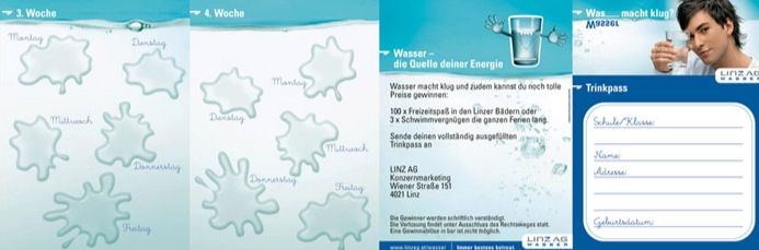 Mit dem Trinkpass wird der tägliche Wasserverbrauch dokumentiert. Ein Wettbewerb deckt den spielerischen Teil ab. Kinder können damit nicht nur klüger und gesünder werden, sondern auch - wenn sie ihren vollständigen ausgefüllten Trinkpass an Linz Wasser senden, tolle Preise, wie 100 Freizeitpässe der Linzer Bäder oder dreimal Schwimmvergnügen, die ganzen Ferien lang, gewinnen.