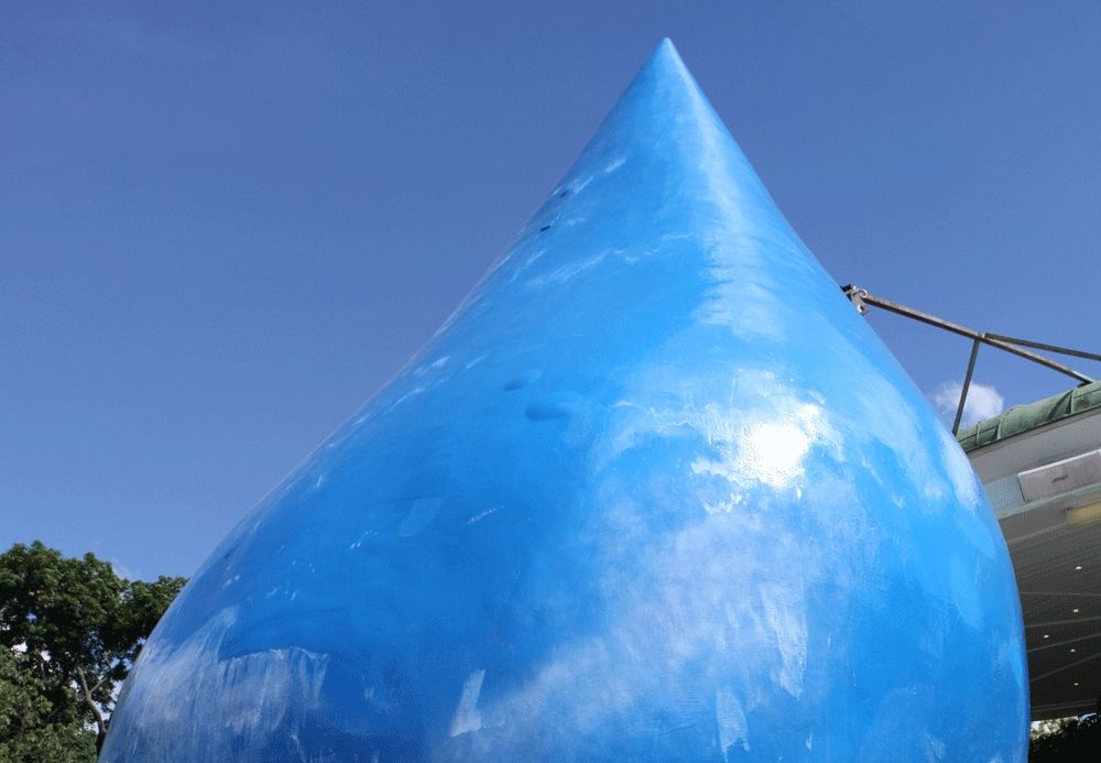 Ikonisch! Poppig! Auffällig! Spielerisch in den öffentlichen Raum gestellt, wirbt „BigDrop“ für das Thema Wasser.