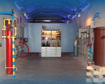 Bei diversen „Entrümpelungen" wurden durch Unkenntnis viele unwiederbringliche Exponate entsorgt. Als in den 80er Jahren die Möglichkeit bestand in einem aufgelassenen Büroraum einige Exponate aufzustellen, kamen auch Schnitte von Pumpen, Schiebern, Wasserzähler etc. dazu. 1986 bot sich die Gelegenheit, die gesammelten Stücke in einem stillgelegten Behälter auszustellen. Mit kräftiger Unterstützung der Werksleitung wurde der Behälter adaptiert und eingerichtet. Um den virtuellen Besuch fortzusetzen klicken Sie bitte auf die verschiedenen Räumlichkeiten bzw. die entsprechenden Bilder.